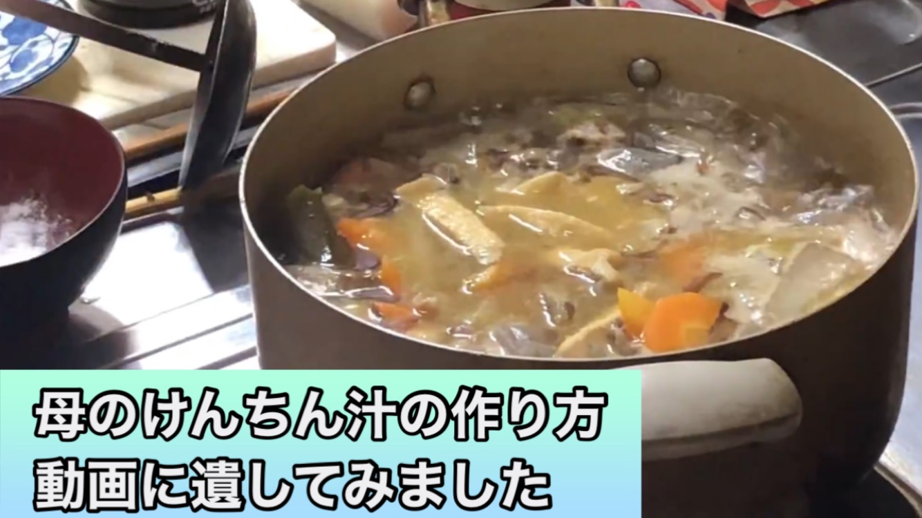 母のけんちん汁の作り方動画に遺してみました親孝行実行TwitterFacebookはてブPocketLINEコピー 2021.09.02※前半は音声のみです。後半ガッツリです。本編は長いので流し見でもしてもらえれば、それだけで幸いです。